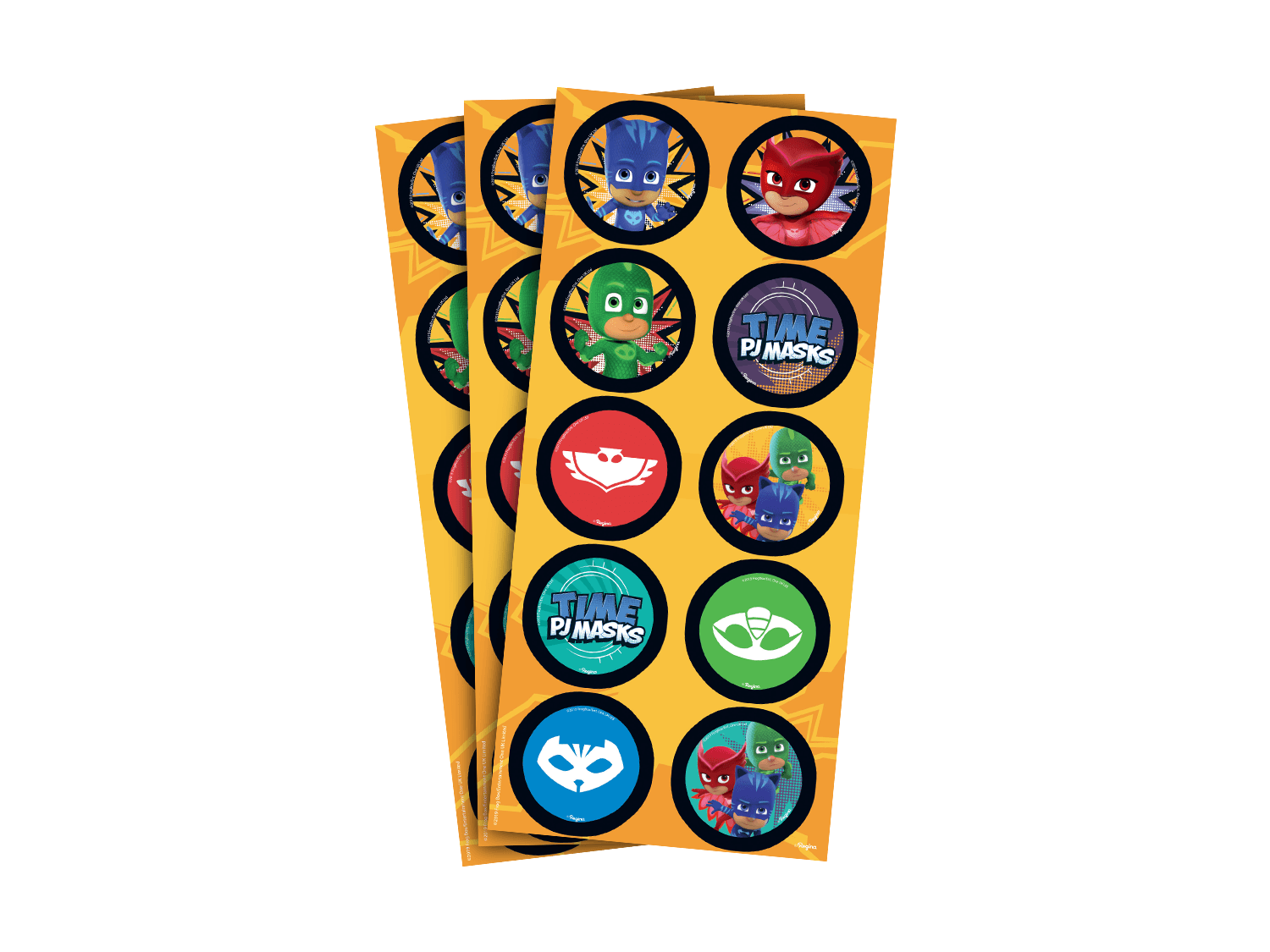 O Adesivo Decorativo Redondo PJ Masks é ideal para colar no caderno, no vidro, para decorar a festa ou personalizar lembrancinhas. São 03 cartelas com 4cm cada adesivo, com a qualidade e garantia do produto oficial licenciado.