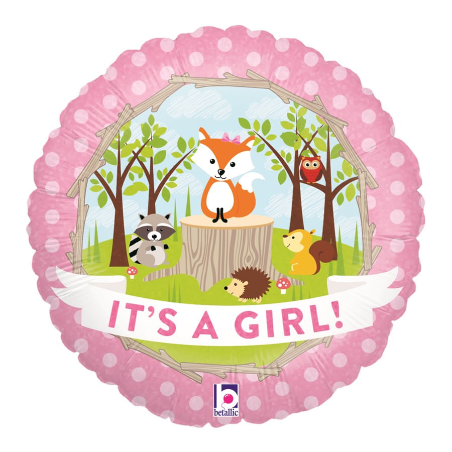 Balão Metalizado Holográfico Redondo Its A Girl Forest Rosa 18" / 45cm