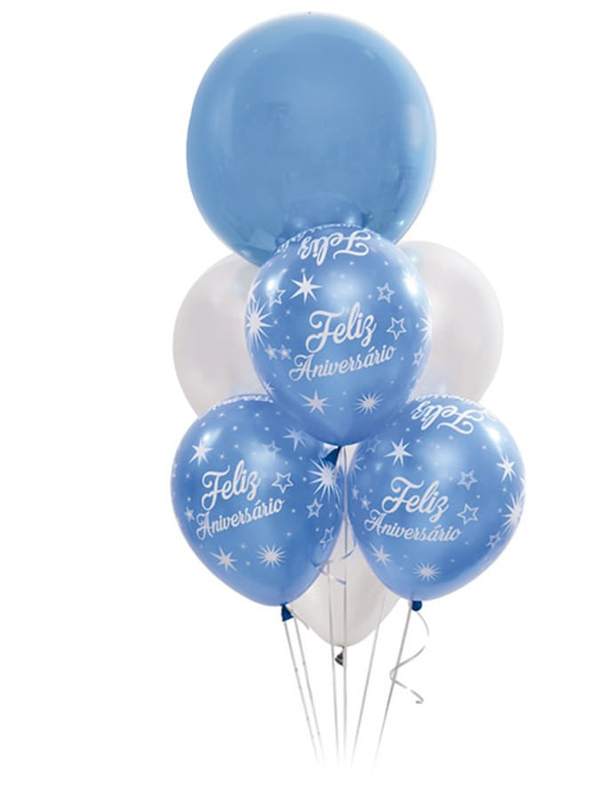 Com o Bouquet de Balões Masculino Azul, sua festa ficará incrível e cheia de elegância. O bouquet contém uma mistura harmônica de balões nas cores azul e branco, com estampa masculina.