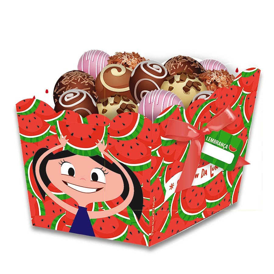 O Cachepô Show da Luna Melancia com 8 unidades é perfeito para quem deseja uma decoração temática e divertida em sua festa. Ideal para colocar lembrancinhas, enfeitar a mesa de doces e também dos convidados. Com dimensões de 11cm de altura x 9,5cm de largura (frente) e 9,5cm de profundidade (lados), esses cachepôs são de papel cartão e contam com cartãozinho de mensagem para fixar na alça. Produto oficial licenciado.