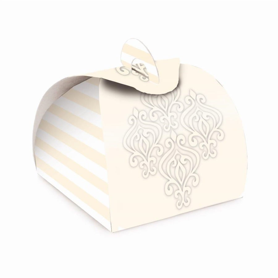 A Caixa Bem Casado Valise Adamascado Marfim e Branco 6,5x6,5x5,5 - 24 Un é a escolha ideal para quem quer proporcionar um toque de elegância e sofisticação para suas lembrancinhas de casamento. Feita com acetado + pigmento colorido, essa caixa tem as seguintes medidas aproximadas: altura 5,5cm, largura 6,5cm e comprimento 6,5cm. Além disso, a caixa é vendida em pacotes com 24 unidades.