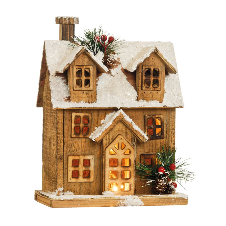 Cromus - Casinha de Madeira 3 Andares Nevada Decorativa com 10 Leds. Funciona a Pilha 3 AA