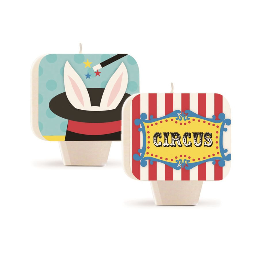 Surpreenda seus convidados com a vela dupla face do tema circo da Cromus Circus. Composto por parafina e papel adesivado, esse produto é entregue em uma embalagem com 01 unidade e possui dimensões de C 7,5 x L 1 x A 8,5cm.