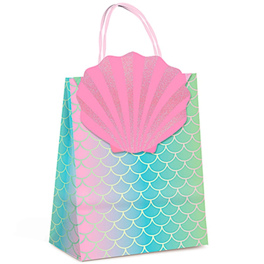 Com este pacote com 10 unidades de Sacolas de Papel para Festa Sereia com Fechamento P você terá ótimas opções para decoração e lembrancinhas com o tema sereia.