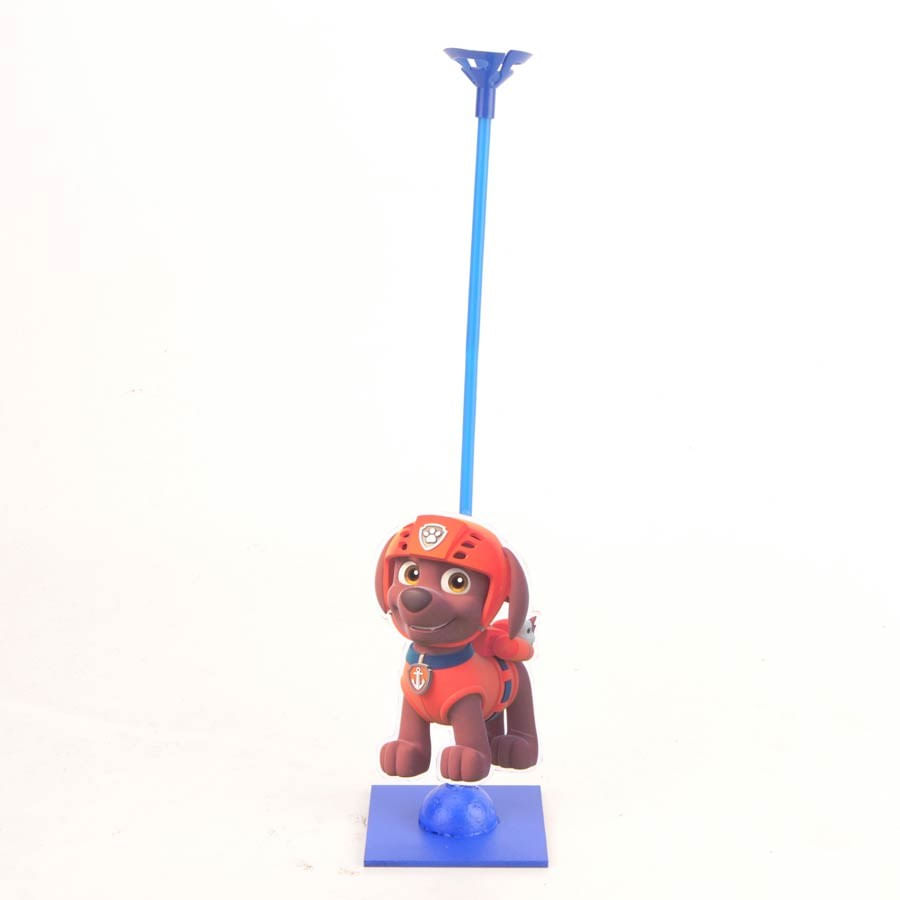 Produto com vareta para balões em material plástico flexível e personagem impresso em papel cartão de lado único.