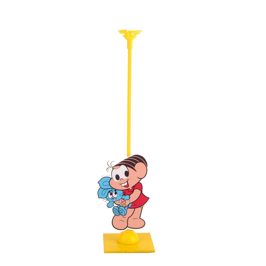 Produto com vareta para balões em material plástico flexível e personagem impresso em papel cartão de lado único.