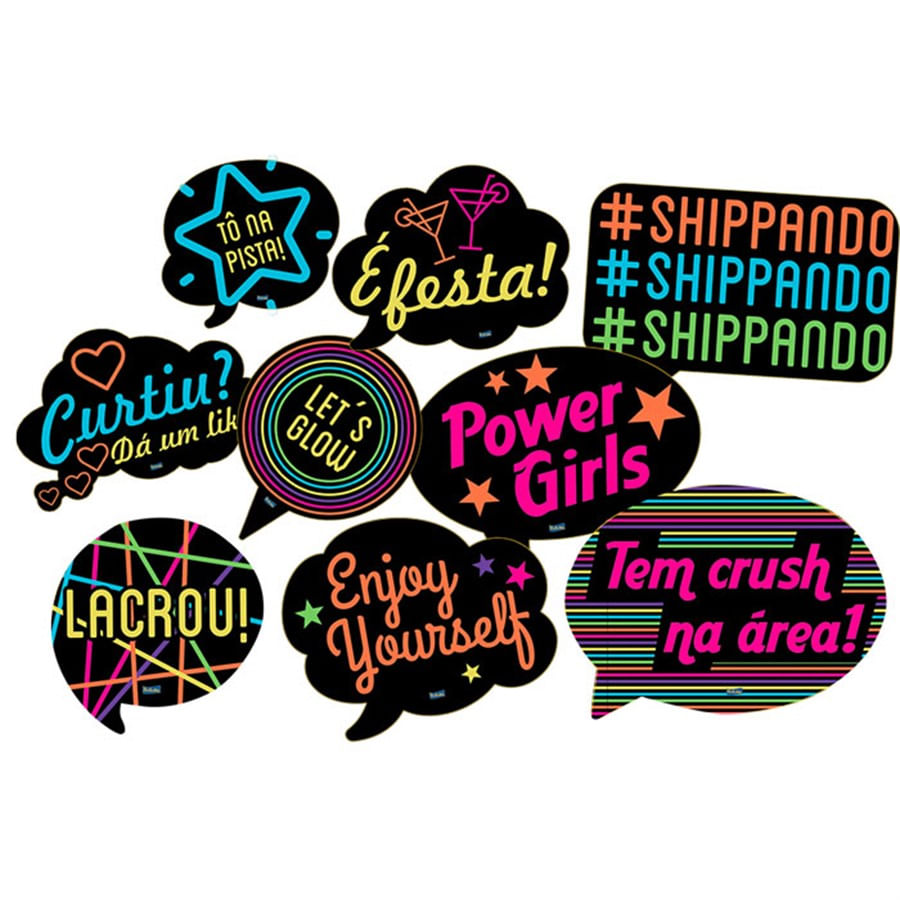 Kit Plaquinhas Neon. Kit plaquinhas com expressões variadas, impressas em papel cartão de alta qualidade, ideais para deixar o momento ainda mais divertido. Com essas plaquinhas, sua festa ficará ainda mais animada e seus convidados poderão compartilhar momentos especiais com amigos e familiares. O