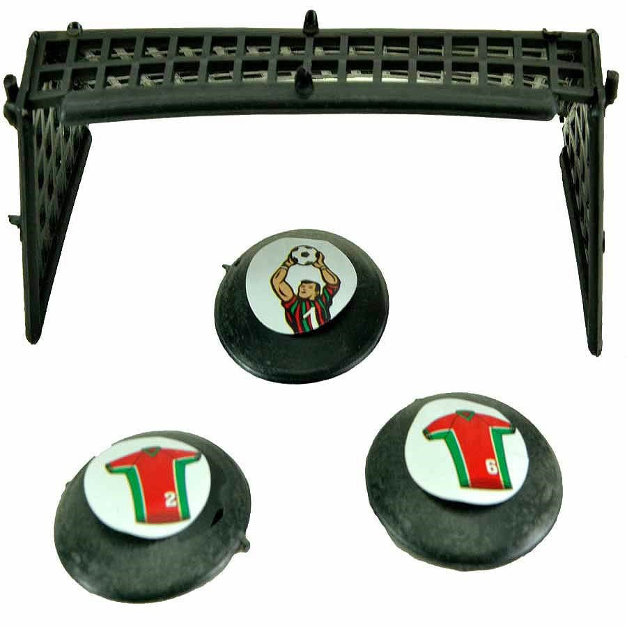 Conteúdo da Embalagem: 10 botões, 1 goleiro, 1 trave, 2 bolas, 1 palheta e 1 cartela com adesivos das camisas.