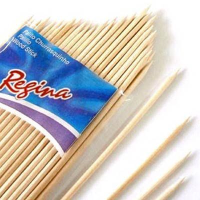Palito de madeira, resistente e seguro para o uso alimentar.