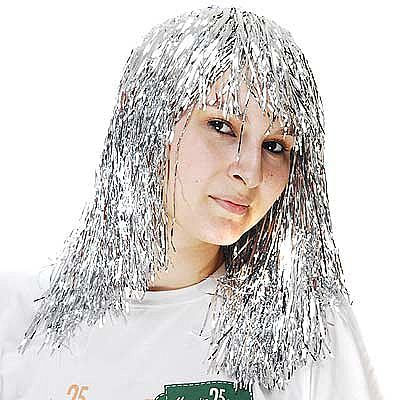 Peruca com fios metalizados, ideal para festas temáticas, carnaval e eventos especiais. Adicione um toque de brilho ao seu look com essa peruca prata.