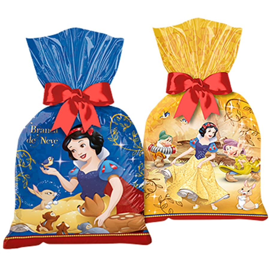 A Sacola Plástica Branca de Neve Clássica possui impressão frente e verso com a imagem da personagem mais famosa dos sete anões! Além disso, o material é plástico polietileno altamente resistente.