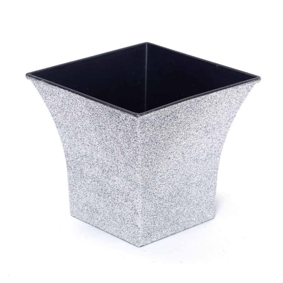 Adicione um toque contemporâneo à sua decoração com o Vaso Decorativo quadrado prata. Com 11cm de altura e fabricado em Plastico Silver, é perfeito para arranjos florais e combinações com outras peças de decoração.