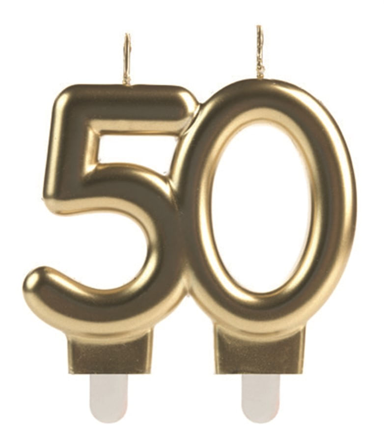 Compre já a Vela 50 Anos Dourada na Festas da 25! Dê um toque especial e elegante na decoração de sua festa de 50 anos com essa linda vela na cor dourada.