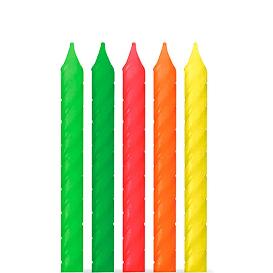 Com suas espirais em neon, essas velas vão surpreender seus convidados em qualquer tipo de evento. Além de sua aparência inovadora, elas são fabricadas com material de qualidade, permitindo que suas cores sejam fieis em todos os itens.