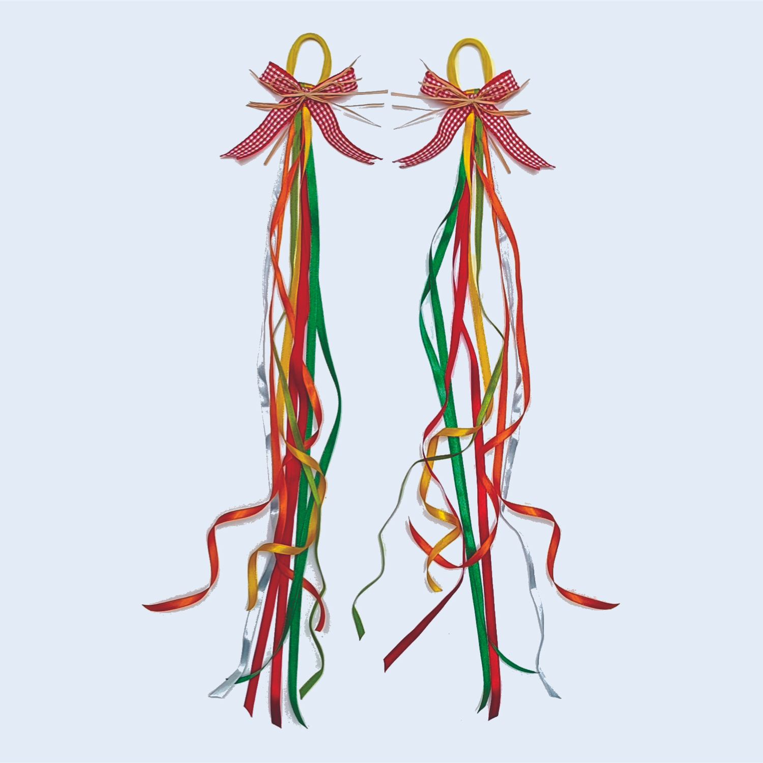 Este acessório encantador traz a alegria das festas juninas com seus laços de fita feitos à mão. Composto por 2 unidades, é ideal para dar um charme extra ao visual, seja para dançar quadrilha ou simplesmente entrar no clima junino.