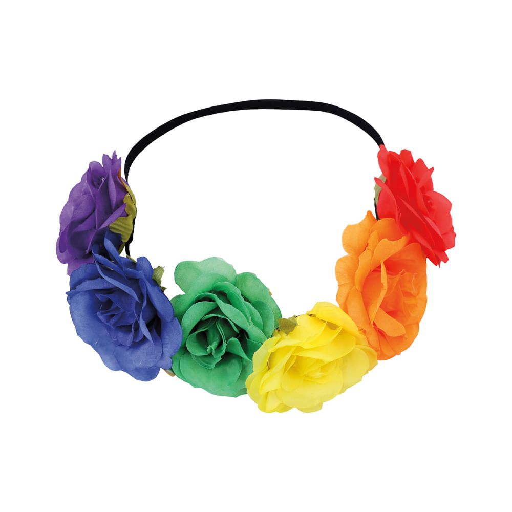 Utilize a Tiara Flores Arco-íris Adulto para compor uma fantasia de Carnaval criativa e cheia de estilo.