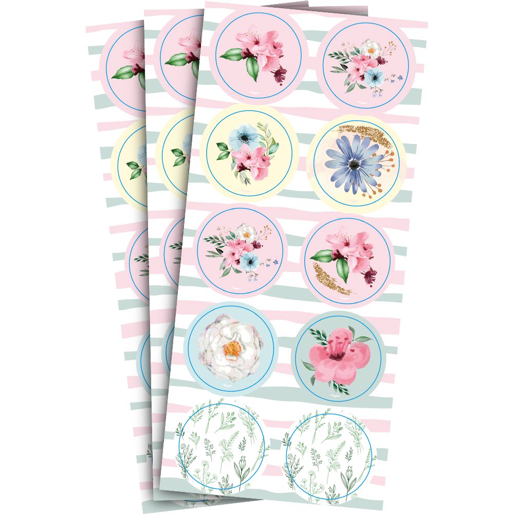 - Adesivos em formato redondo, ideais para personalização de lembrancinhas, latinhas, tubetes, marmitinhas, tags, toppers, entre outros;