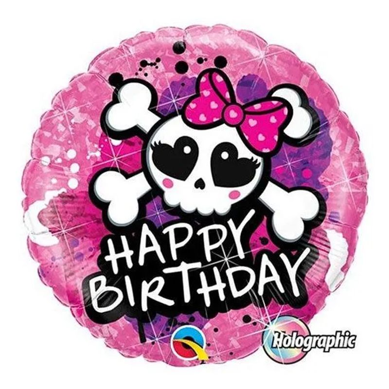 Nome: Balão Qualatex 18" - Redondo Hol - Happy Birthday-Caveira - Qualatex