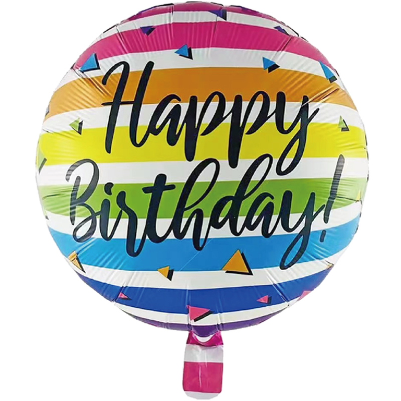 O Balão Metalizado Redondo "Happy Birthday" 18" colorido é uma adição encantadora à sua festa, ajudando a criar uma celebração memorável e cheia de estilo!