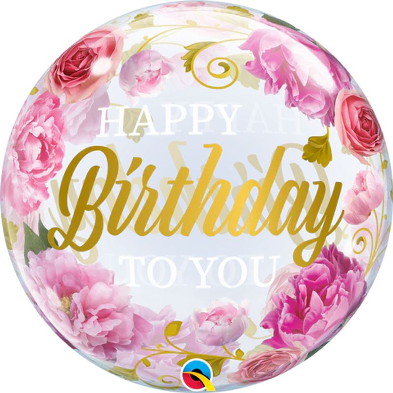 Deixe sua festa ainda mais memorável com o Balão Qualatex 22" - Bubble Simples - Happy Birthday To You-Peonies, e proporcione momentos encantadores para você e seus convidados.