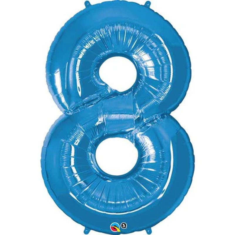 O Balão Qualatex 34" - Número Oito Azul Safira é a opção ideal para quem busca sofisticação e elegância na decoração de festas. Com um design exclusivo em formato de número oito na cor Azul Safira, este balão de 34 polegadas (86 cm) irá adicionar um toque especial ao seu evento.