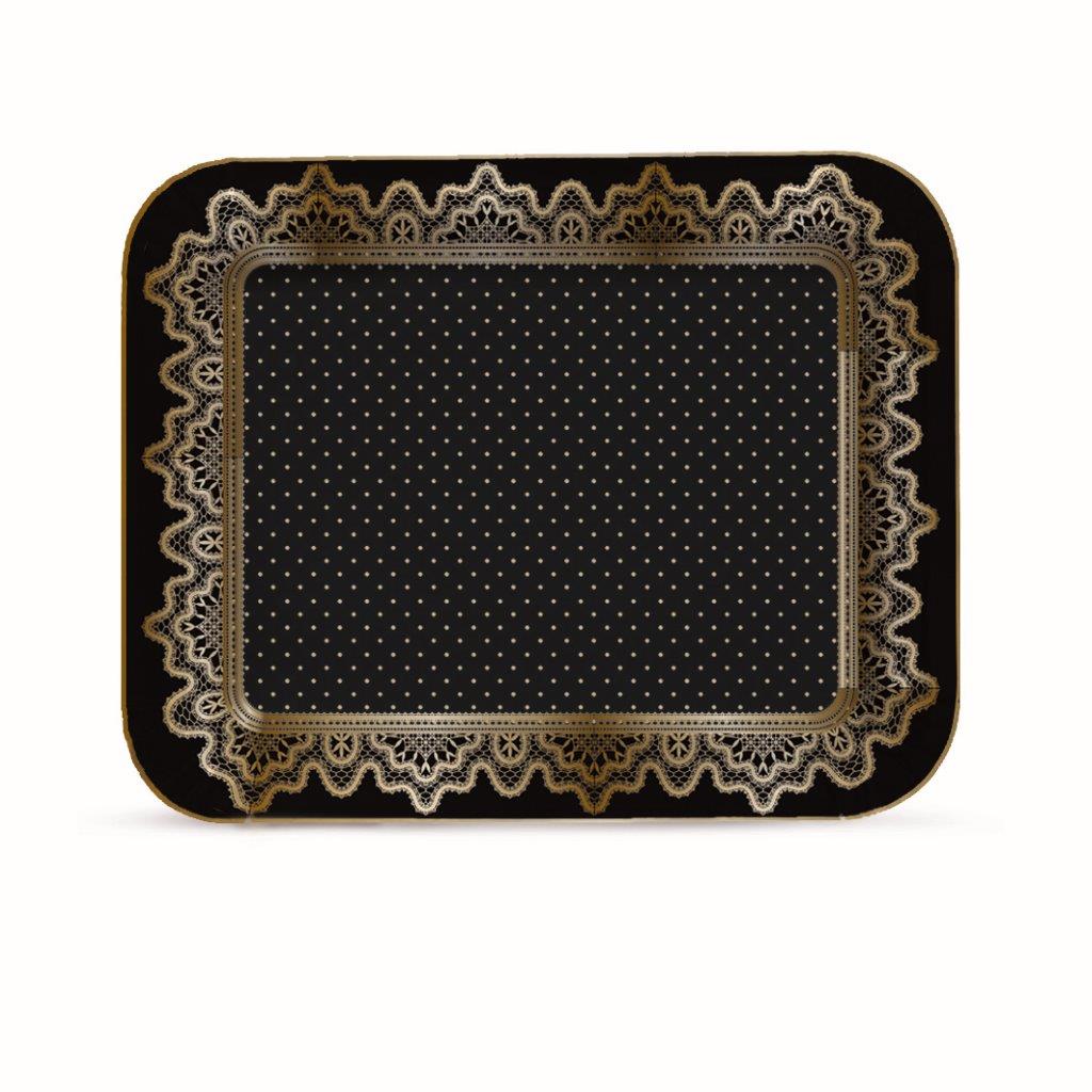 A Bandeja Laminada Renda Preto e Ouro R4 é perfeita para quem busca sofisticação e praticidade na hora de servir. Com design elegante em renda preto e ouro, a bandeja dá um toque especial à sua mesa, além de ser produzida com materiais de qualidade como Bopp + Cartao + Papelao + Pigmento Colorido.