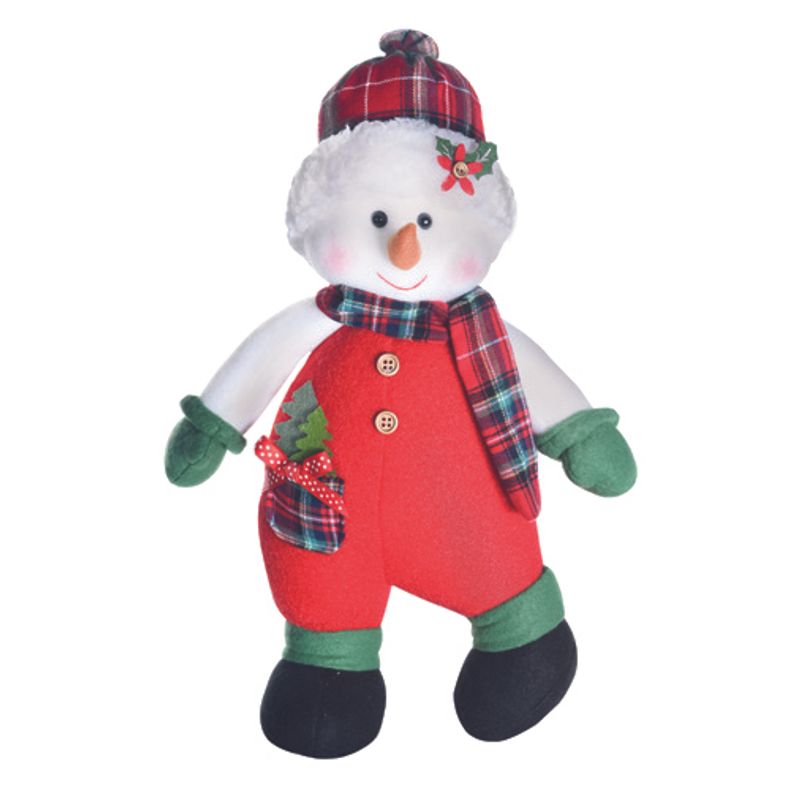 Bola de neve com gorro e cachecol xadrez nas cores vermelho, verde e branco para adicionar um toque natalino à decoração.