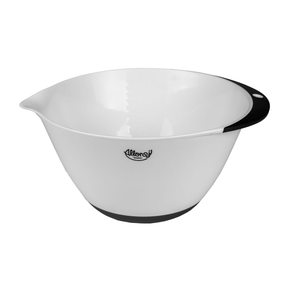 O bowl mutiuso com medidas impressas no interior, alça de fácil aderência que possibilita ter firmeza durante o processo de manuseio, bico de despejo fácil e fundo antiderrapante, para ser usado na cozinha.