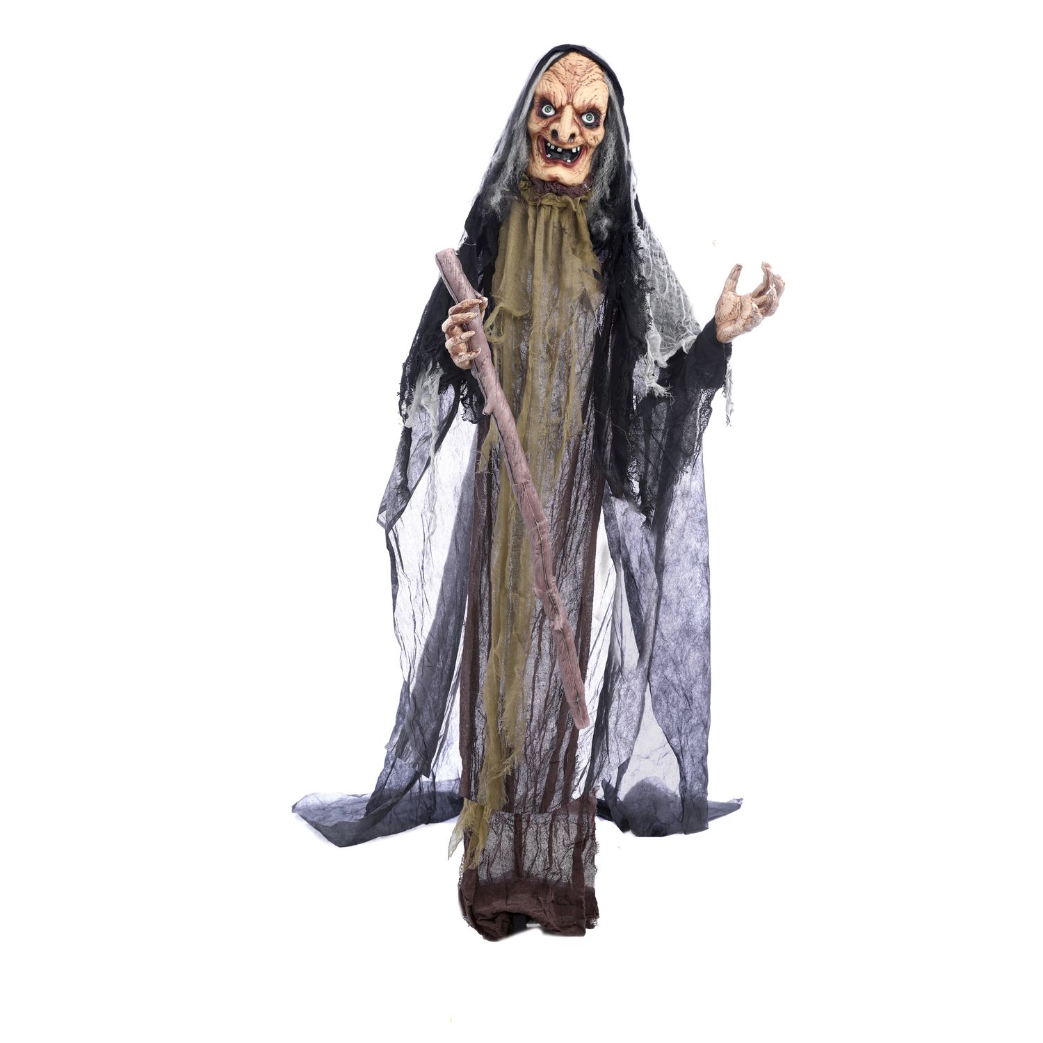 - Design realista: Com detalhes impressionantes e uma expressão facial assustadora, essa bruxa irá conquistar a atenção de todos que a observarem.