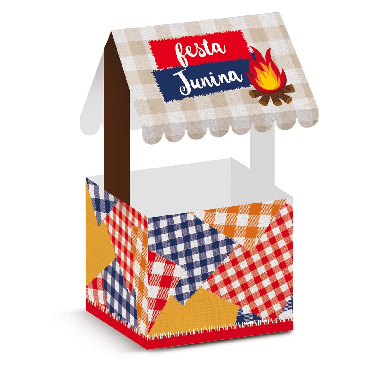 O Cachepot de Papel em formato de Barraca Xadrez Junino é uma adorável opção para decoração de festas juninas. Com um design encantador que remete às tradicionais barracas de festas, ele é perfeito para acomodar plantas, doces ou lembrancinhas, trazendo um charme especial ao seu arraiá.