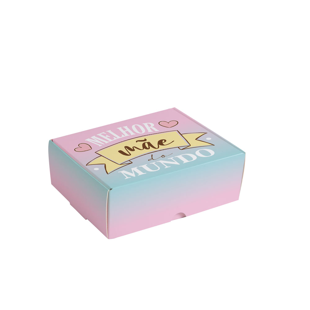 A Caixa para 4 Brigadeiros Brigadeiro Mãe é ideal para embalar e valorizar a apresentação dos brigadeiros em sua festa. Fabricada em papel cartão resistente, possui uma estampa charmosa e delicada que harmoniza perfeitamente com o tema de festa de Dia das Mães. Cada embalagem possui medidas aproximadas de altura de 4,5cm, largura de 9cm e comprimento de 9cm.