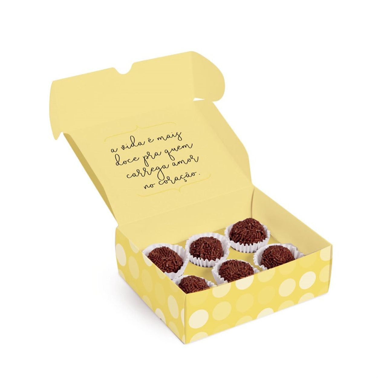 Material resistente: feita em papel cartão, proporciona segurança no transporte dos brigadeiros.