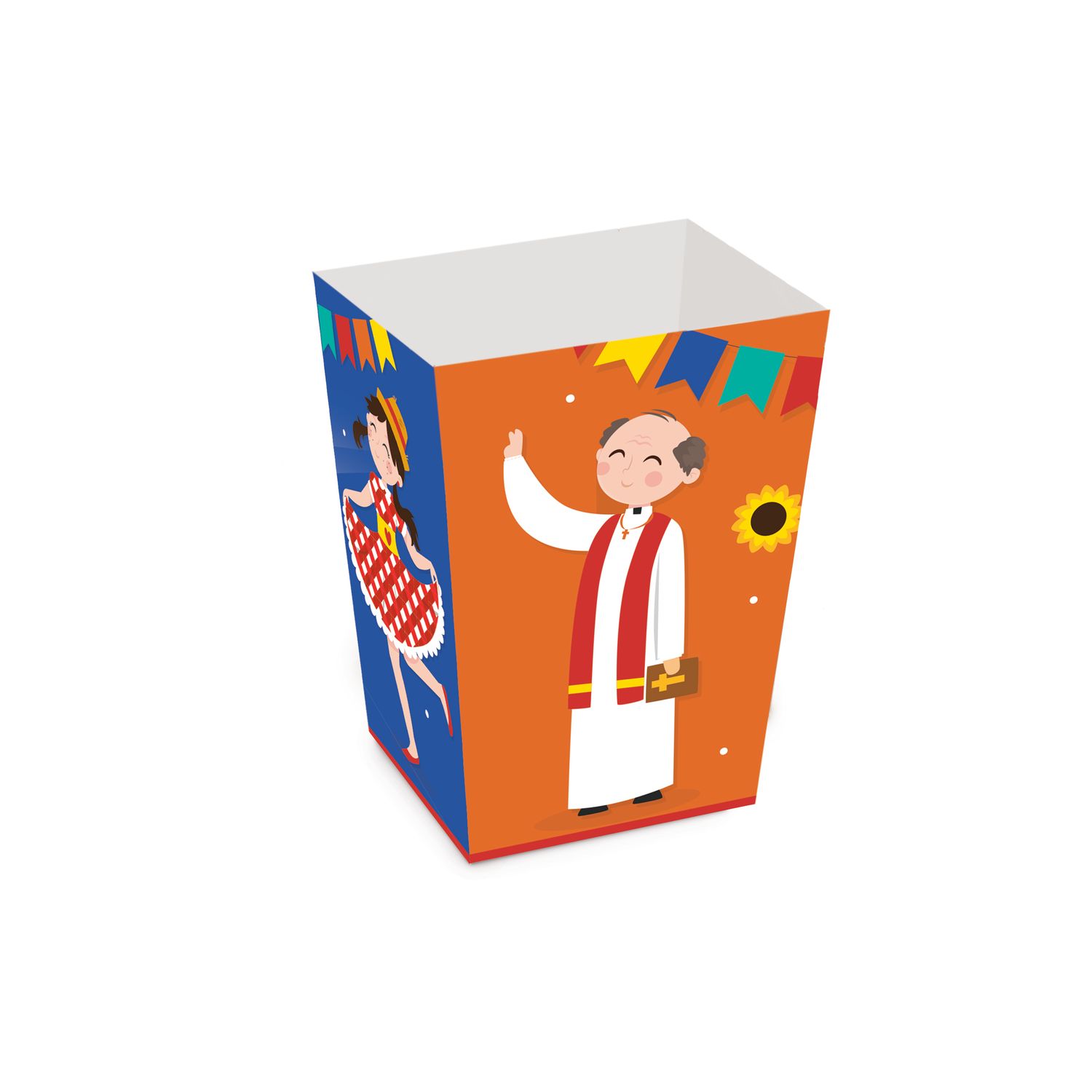 Nome: Caixa Para Pipoca Festa Junina Arraiá P 6x6x12,5 - 10 Unidades