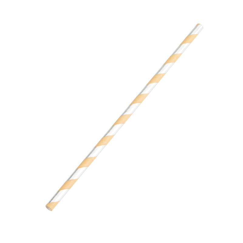 Canudo Papel Listrado Kraft com Prateada - 12 Unidades