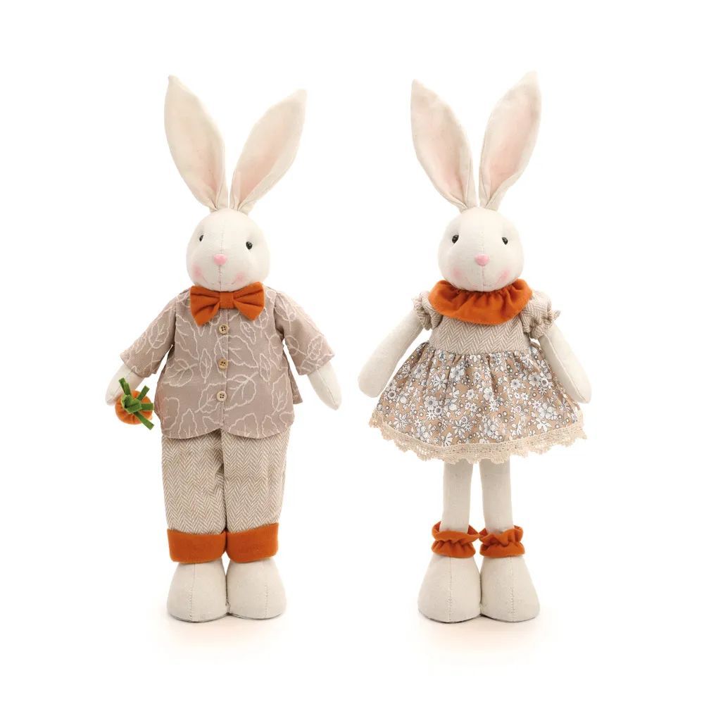 O Casal Coelhos Decorativos Em Pé Com Cenoura Bege e Laranja da Cromus é o item perfeito para deixar a sua decoração de Páscoa ainda mais encantadora. Com um design adorável e detalhes encantadores, esses coelhinhos decorativos irão trazer um toque especial ao seu ambiente.