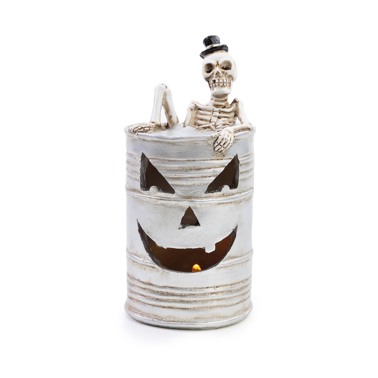 Coloque a Caveira Decorativa Metalizada Jack no centro de uma mesa de jantar ou de uma mesa de centro para criar um ponto focal assustador na sua decoração de Halloween.