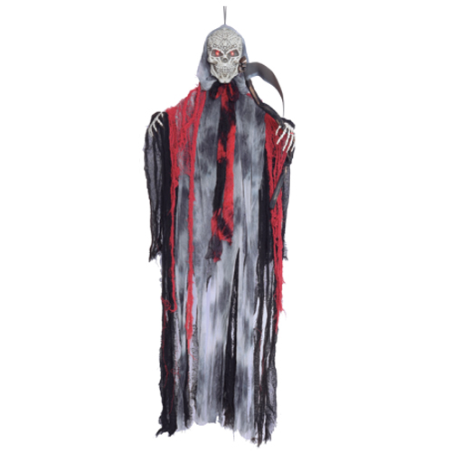 A Caveira Talles é uma adição imperdível à sua decoração de Halloween. Com 1,20 metros de altura, esta caveira interativa traz som, luz e movimento, proporcionando uma experiência aterrorizante e fascinante para todos os convidados.