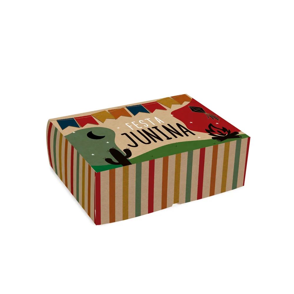 A Cesta na Caixa Junina Kraft Colorido P é versátil e pode ser utilizada de diversas maneiras, desde a composição da mesa principal, até a confecção de lembrancinhas temáticas para os seus convidados. Além disso, é perfeita para compor mini arranjos de flores, pequenos presentes, e até mesmo para servir como embalagem para doces e guloseimas típicas de festas juninas.