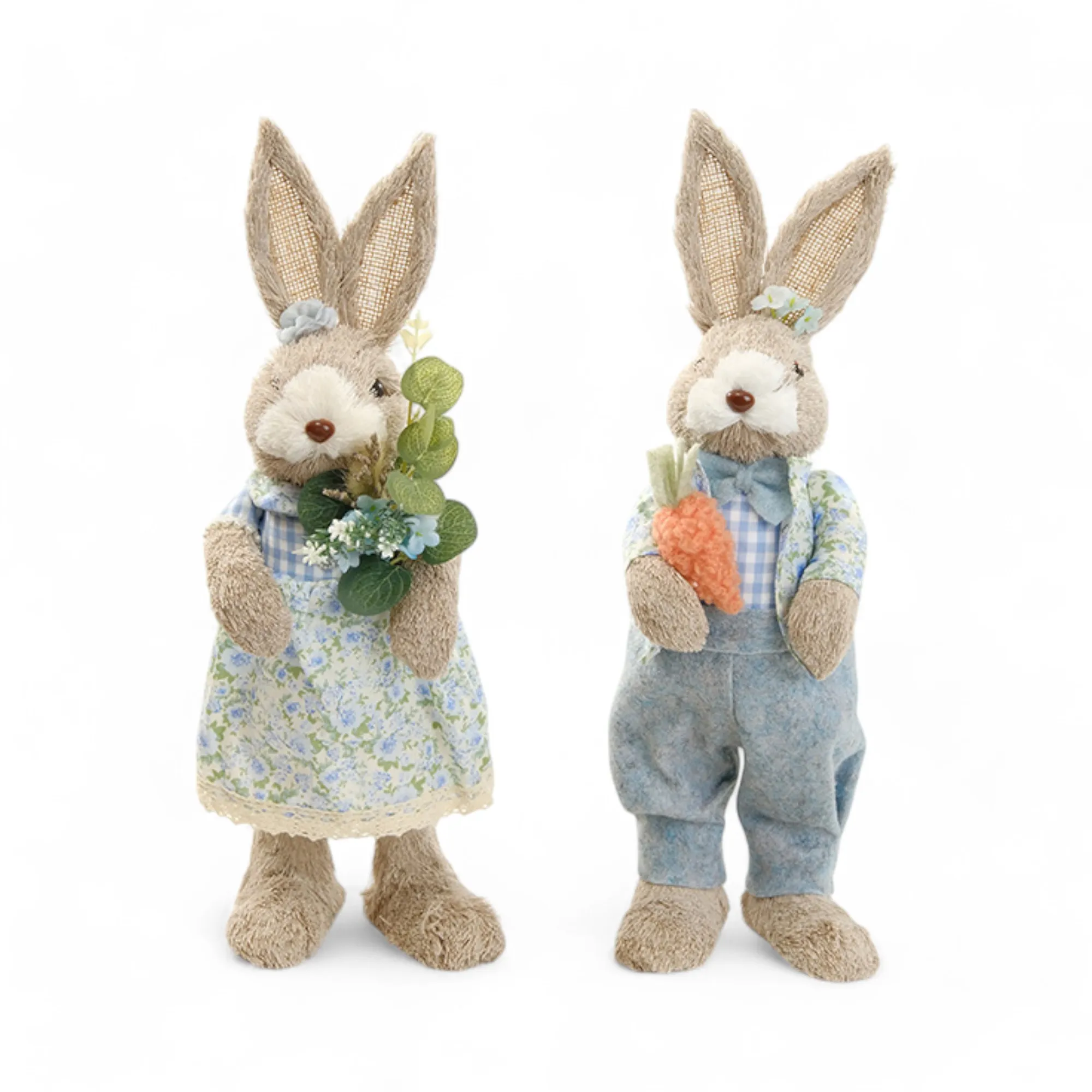 Coelho decorativo de tecido na cor azul, segurando uma cenoura, adicionando um toque de cor e diversão à sua decoração.