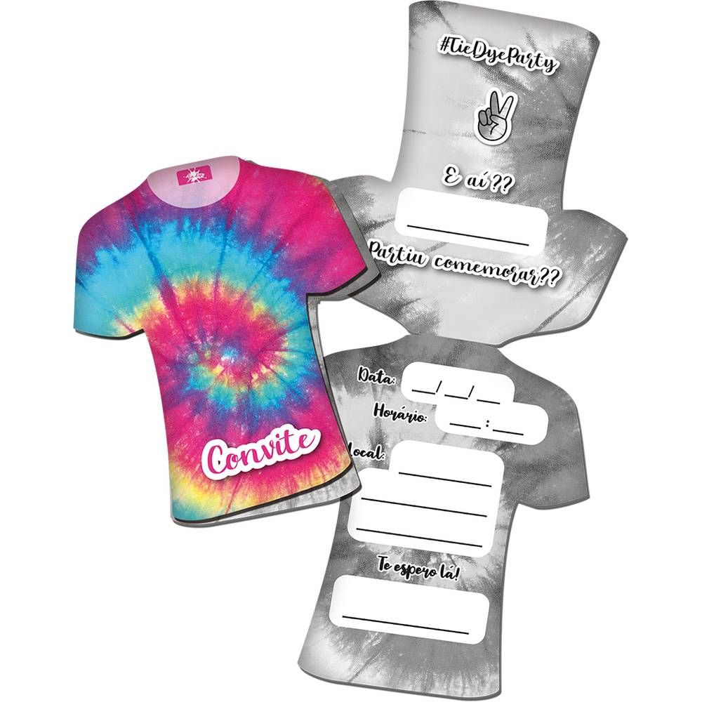 O Convite Tie Dye da Festcolor é muito fácil de personalizar. Você pode escrever as informações da festa, como data, horário e local, nas áreas em branco pré-definidas no convite. Além disso, os convites vêm em pacotes com 8 unidades, o que torna conveniente para festas com um grande número de convidados.