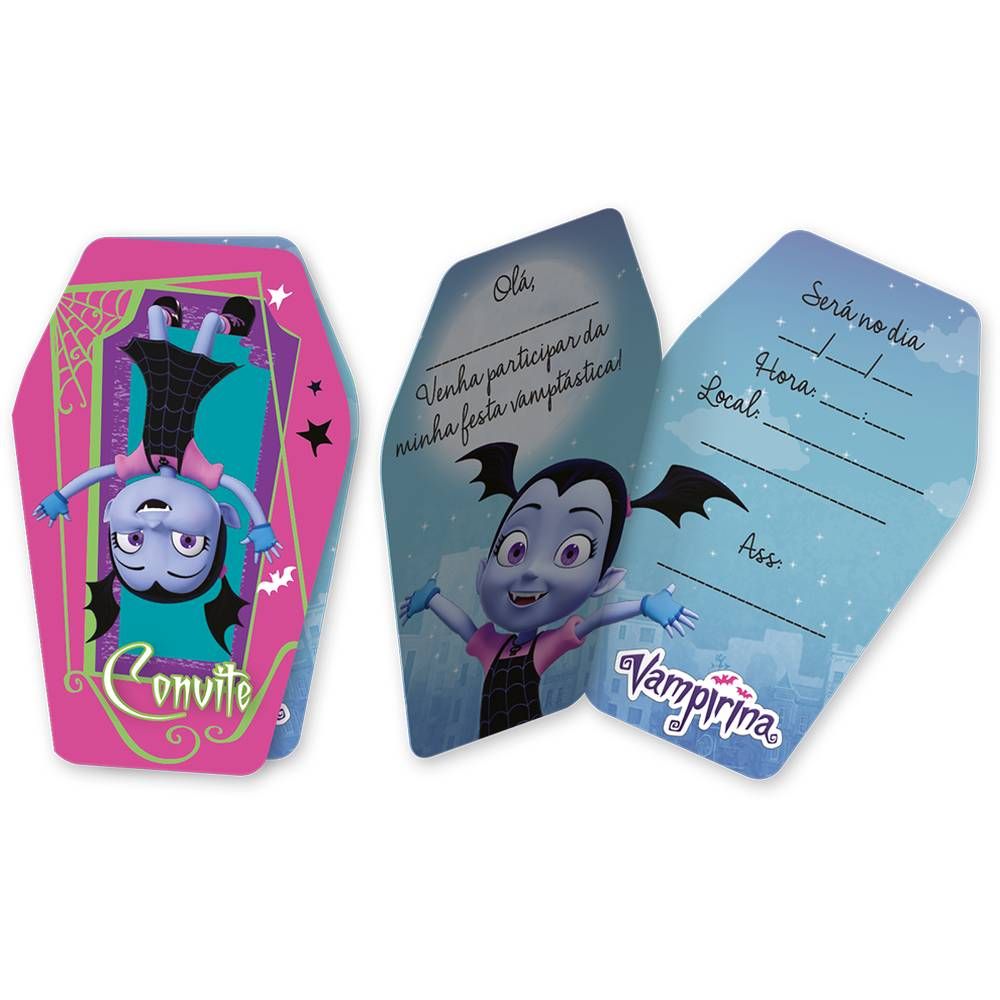 Os Convites Vampirina são perfeitos para festas de aniversário, festas temáticas, eventos escolares e muito mais. Use a imaginação e crie uma festa inesquecível inspirada na adorável Vampirina.
