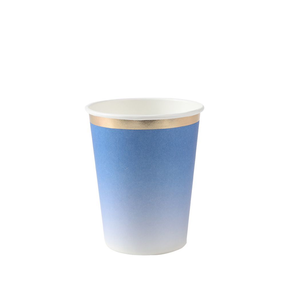 Copo Papel Azul Degrade Borda Dourada - 8Un - Silver Plastic