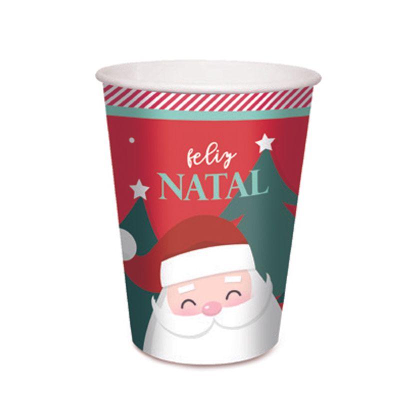 Celebre o Natal com estilo utilizando os Copos de Papel Natal Candycane da marca Cromus! Com um design divertido que apresenta o Papai Noel e a escrita "Feliz Natal", esses copos são perfeitos para servir bebidas quentes ou frias durante as festividades.