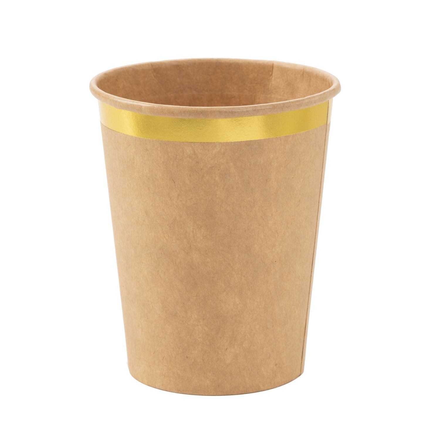 Nome: Copo de Papel 270ml Kraft Borda Dourada - Silver Plastic