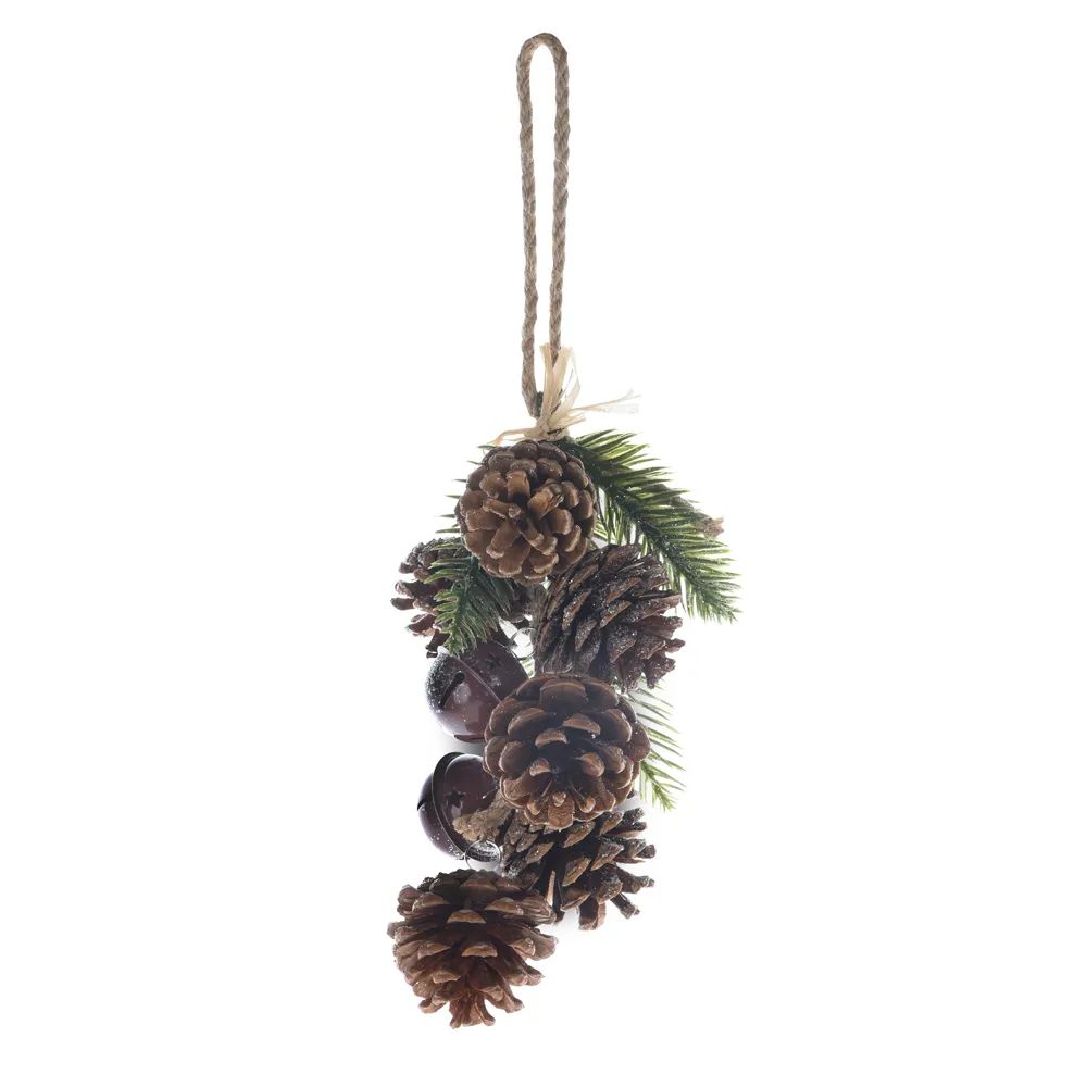 Deixe sua decoração de Natal mais encantadora com o Enfeite Pendurar Sino Pinha Folha Marrom Verde da Cromus!