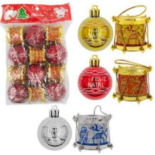 Enfeites Natalino Cores Sortidas 5cm - Kit com 12 Peças