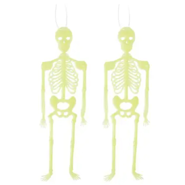 Use Esqueleto Decorativo de Parede Brilha No Escuro com Descartáveis Halloween, Adereços e Haalloween, e Fantasias de Halloween. Para um Halloween mais completo faça um Arco Descontruído com Balões Roxo, laranja e preto.