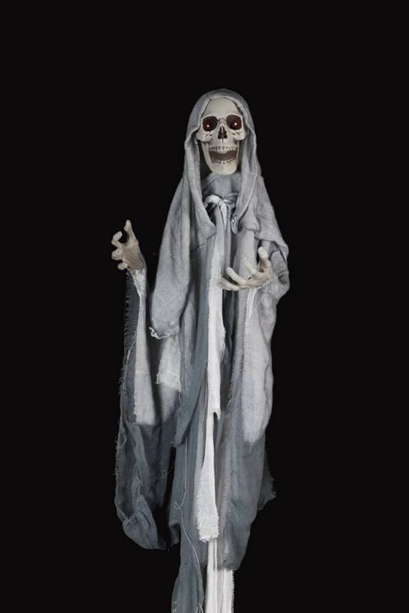 Este impressionante enfeite possui 1,80 metros de altura, proporcionando um visual assustador para sua decoração de Dia das Bruxas.