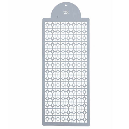 O Estêncil Ornamental ST39-28 da Cromus Allonsy é ideal para personalizar e decorar bolos, doces, biscoitos e sobremesas com padrões detalhados e elegantes. Produzido em plástico polipropileno atóxico com corte a laser, proporciona precisão e facilidade na criação de desenhos repetitivos. É lavável, reutilizável e durável, perfeito para quem busca resultados profissionais na confeitaria.
