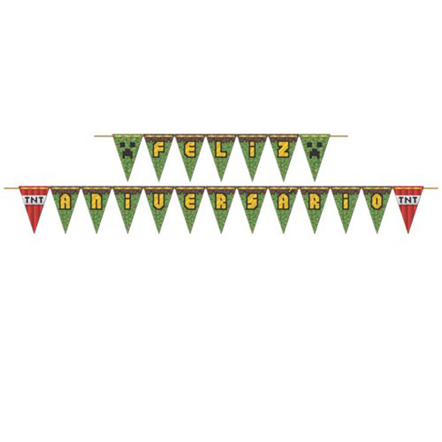 Desfrute de uma festa temática com a Faixa Feliz Aniversário Mini Pixels